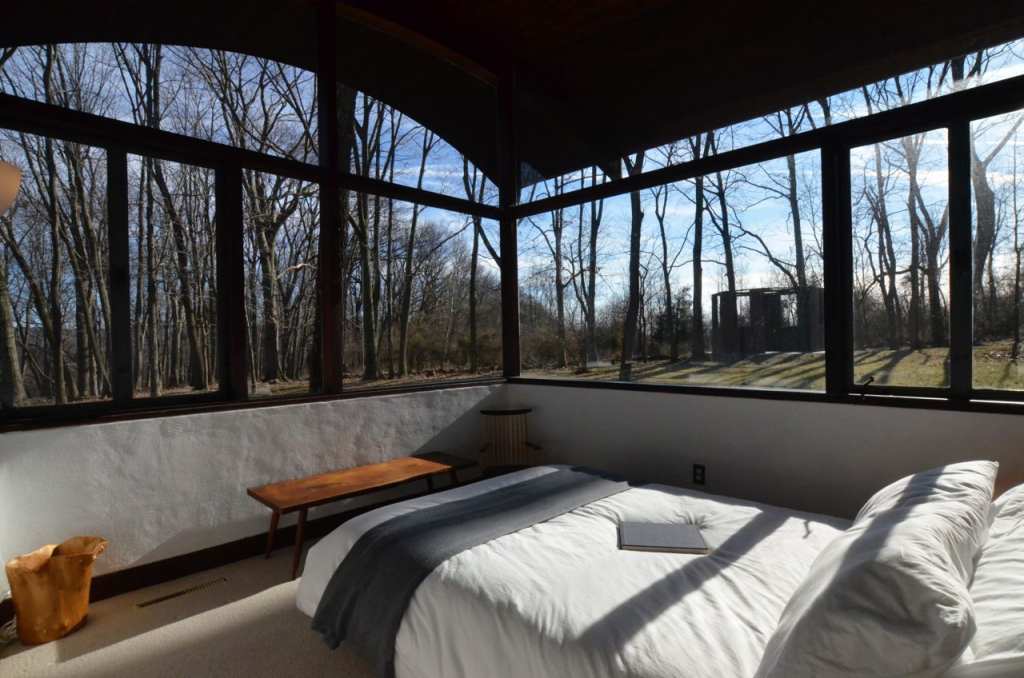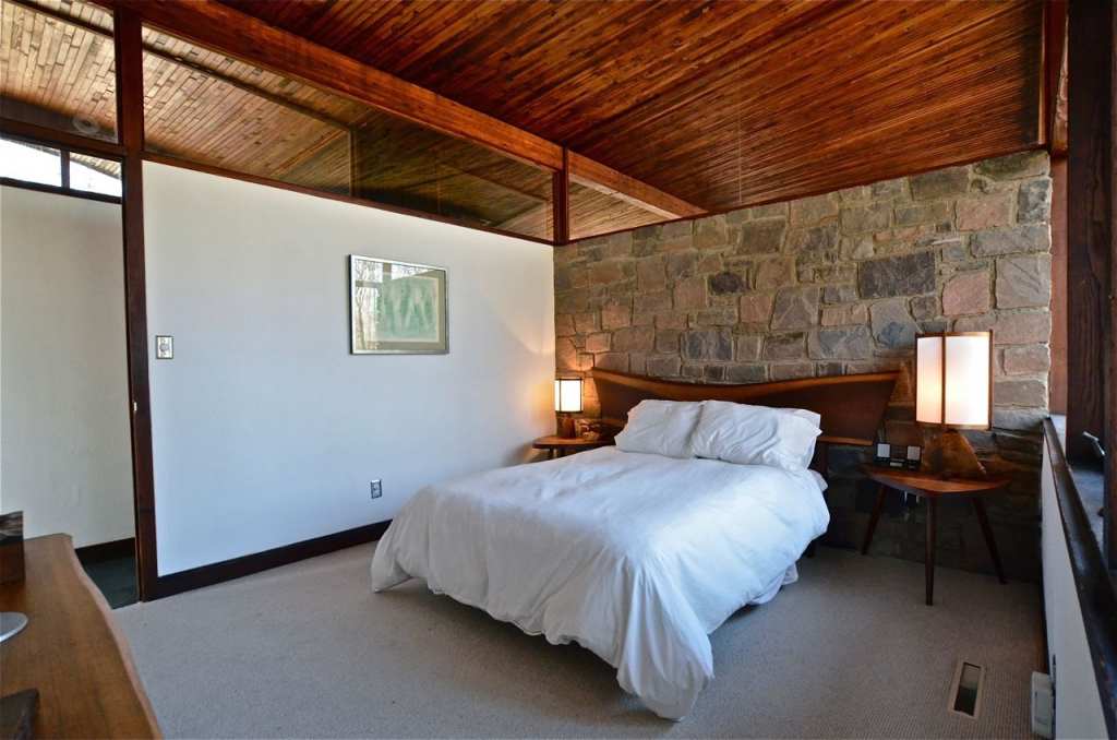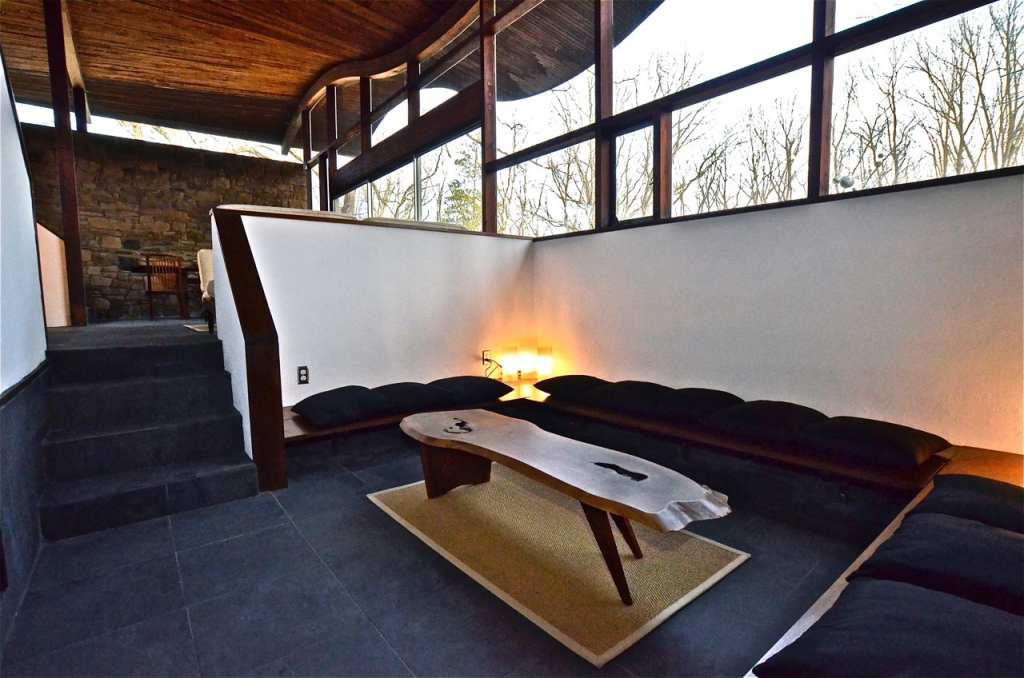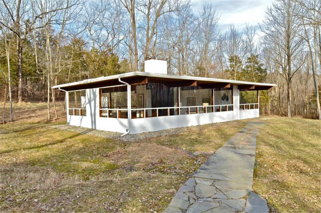 Spectacular architectural country estate and voted one of the 10 Best Houses in America by Architectural Record magazine back in 1961, this curvaceous midcentury home by the architect Jules Gregory in Lambertville, New Jersey is a masterpiece! 'This unique property features a main house and guest house on 11 wooded acres. Designed and built by Gregory in 1960, the fabled home continues to attract attention, because its undulating, double-conoid roof that seems to hover in mid air, put a new spin on Mid-Century Modern design. Gregory built the house with all natural materials, using fieldstone from the property for fireplaces and walls and Pacific Northwest white fir and pine from Colorado for the framing and wood paneling throughout the interior. The property's main house features an undulating conoid roof. With four bedrooms and two baths the 1,664 sq. ft. residence includes spacious living areas, including a sunken living room with stone walls and a fireplace. The home has stayed true to its original design with a few updates that have brought the kitchen and baths into the 21st century. Most of the furnishings that used to be in the home were just as iconic as the house itself. All the lighting and furniture were designed and built by a pillar of mid-century modern design, George Nakashima, a friend of Gregory's who conveniently happened to live and work nearby in New Hope, PA.' Walls of windows bring the outside in making this property one of Hunterdon County's most stunning properties...The guest house (approximately 1200 sq feet) has an airy, loft-like feeling with small kitchenette and full spa-like bathroom. Property has been extensively renovated, including over 400,000 in improvements. Walk the grounds and enjoy all the joys most only dream of! House is being sold in 'as-is' condition. Seller to make no repairs! Square footage is approximate and does not include the guest house. Buyer SOLELY responsible for square footage accuracy.