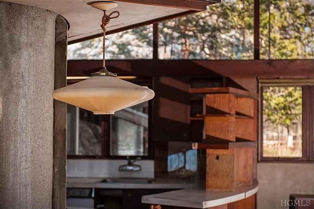 Owners must sell within 2 weeks, all cash deal. No negotiation room. Land alone worth it and can be subdivided. Built by Alfred Bush, early apprentice with Frank Lloyd Wright. Builder's dream for total re-hab. Renovation accommodated by price and subdivide potential for additional lot. Bush's adaptation of Wright's vision assessed by expert as tutored, not copied, and inspired in certain original concepts, such as the use of a double parabolic roof line.